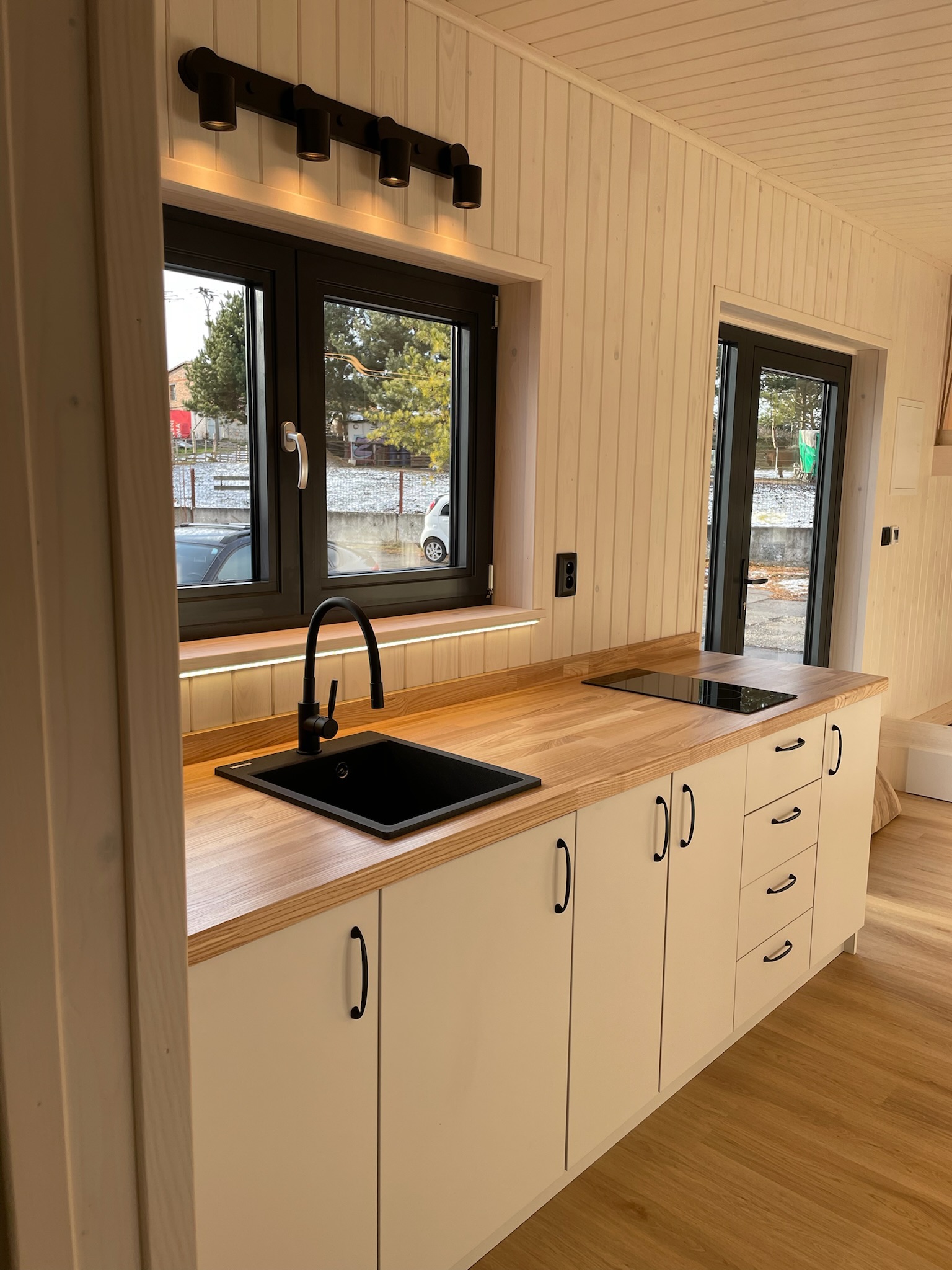 Promyšlený design efektivně využívá dostupný prostor, který naplní nezbytné základní potřeby na omezené ploše.