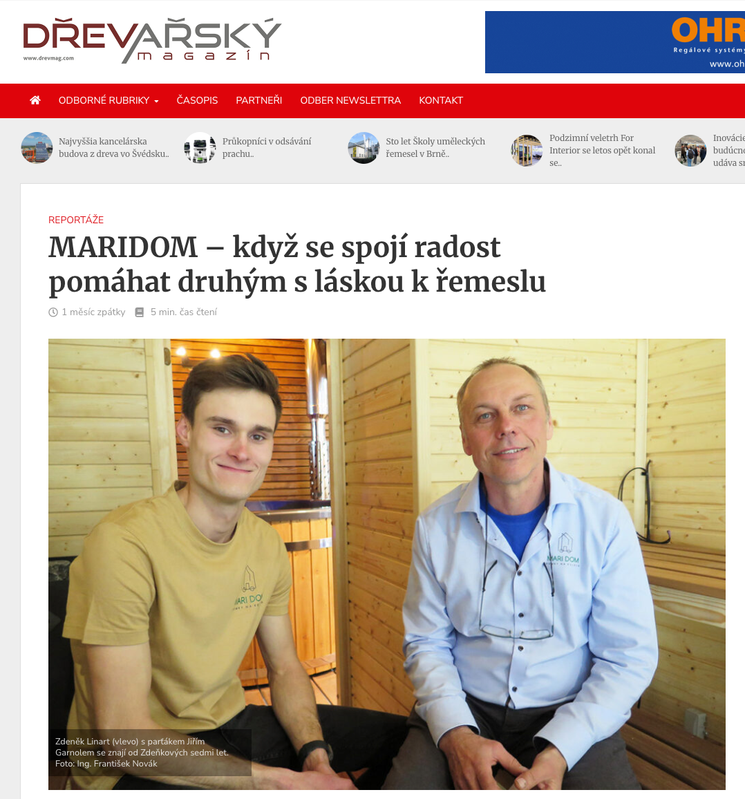 Článek na portálu Drevmag představuje příběh naší firmy. V reportáži se dozvíte, jak vznikaly naše originální maringotky, na jakých projektech pracujeme a co nás motivuje vytvářet jedinečná a smysluplná díla. Inspirujte se naší cestou a zjistěte více o hodnotách, které stojí za firmou MARIDOM.